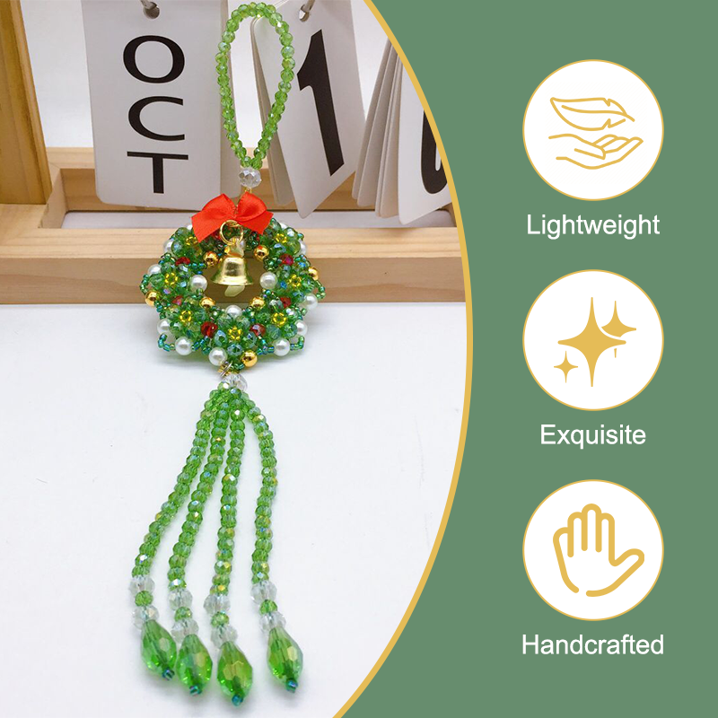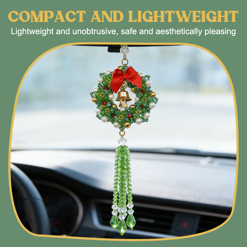 Poiché un ornamento per auto ruota su se stesso, deve avere un bell'aspetto da ogni angolazione. Questi ciondoli hanno una trama 3D spessa e complessa. Il modello "Cloud" ha un aspetto soffice e tridimensionale, mentre il modello "Wreath" è composto da strati di perline verde intenso, accenti di perle e un campanellino dorato che offre sia al conducente che al passeggero una vista a 360 gradi della maestria artigianale.