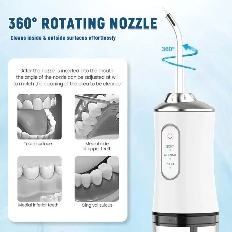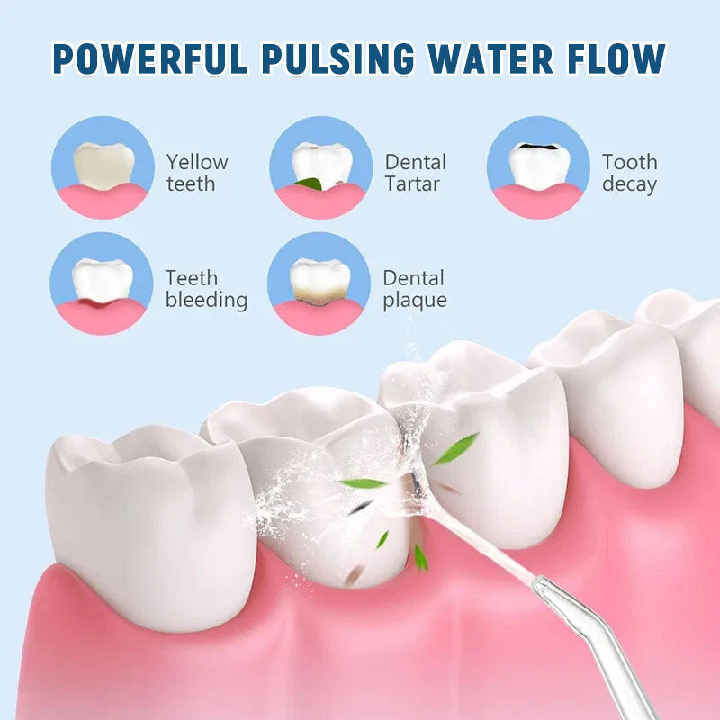 💦 Powerful water spray anytime, anywhere—a portable water flosser that easily fits in your backpack! 🎒🚗